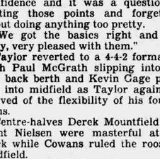 McGrath, with little to do early on, went down with a knee injury on the quarter hour but was able to resume after treatment. With Kent Neilson he forged a rock solid partnership at the heart of the Villa defence and, while Charlton fought back as the first half wore on, they could find no way through.