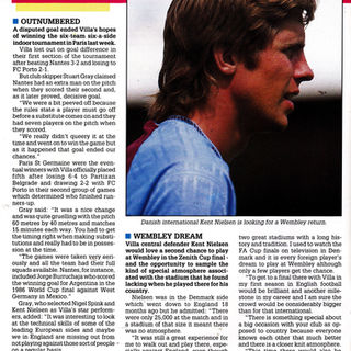 Having survived an awkward 20 minutes or so, the first division side regained their composure as half time approached, Gordon Cowans flashing a shot wide and Platt bouncing an angled drive off the top of the Boro bar.