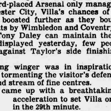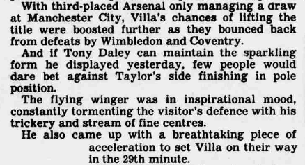 Villa win for the first time in three League games to make it sixteen first division victories in twenty one games so far rhis season under Graham Taylor.