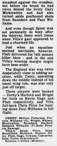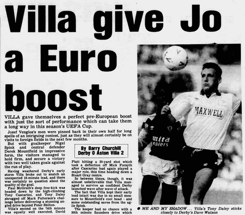 But Villa got the goals that mattered, Tony Daley giving them the lead in the 15th minute after Tony Cascarino knocked down a Paul McGrath free kick and Daley got round defender Patterson to strike a first-time shot across Shilton and into the far corner.