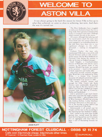 Villa miss out on a second consecutive victory as they are undone by a late goal once again - this time from the hated Steve Hodge who scores an 88' equaliser for Forest.
