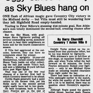 COVENTRY ASTON VILLA ZIMBABWEAN international Peter Ndlovu struck a great goal to settle an intense local derby and keep patched-up Coventry among the first division's high-flyers.