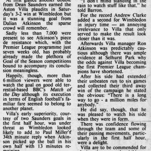 ๐ฉ 3 Oct 1992, Villa 3-2 Wimbledon, Selhurst