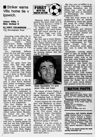 "I always get a buzz playing against United and this game is no exception. I was just relieved Nigel Spink was in such good form." he said with typical restraint.