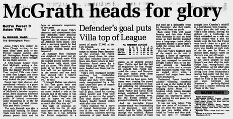 Villa recover from their Carrow Road disappointment to beat Forest with a sublime header from the newly crowned PFA Player of the year Paul McGrath.