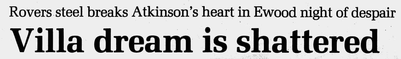 "It was a body blow to Villa, who had started so well and seen ยฃ1.7million forward Dalian Atkinson hit the bar from just a couple of yards out after only 69 seconds."