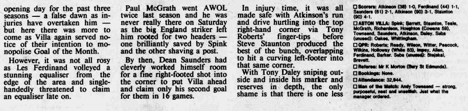 Villa open the 1993-94 with a stylish and comprehensive win over QPR as Andy Townsend made his debut.