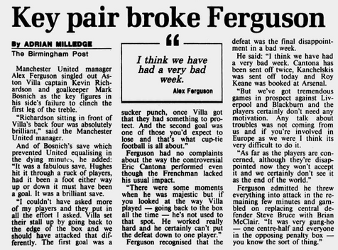 United manager Alex Ferguson might, like many of us, have suspected Villa would man-mark Eric Cantona or Giggs or maybe mass in front of their penalty area.