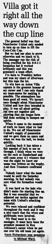 United, ancient and honoured foes, a team experts have been toting as comparable with Busby's greatest, were at first controlled, then subdued by Villa's dedication to manager Ron Atkinson's masterplan.