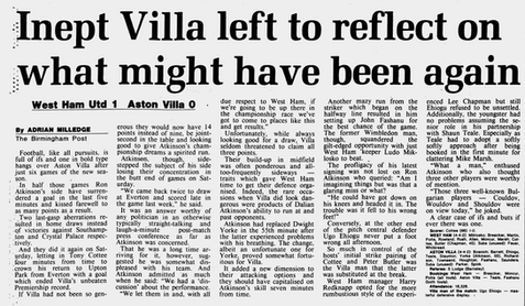 Ron Atkinson was less than pleased with Villaโs second reverse in 72 hours, following the disappointment of their 1-0 UEFA Cup defeat against Inter Milan.
