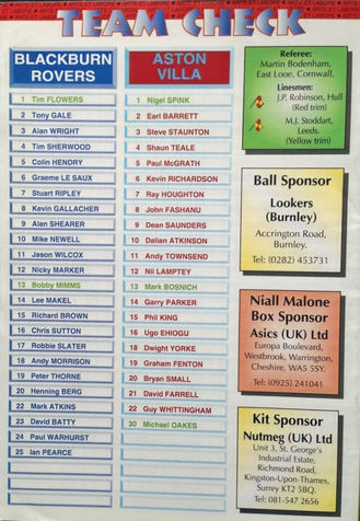 Future Villa boss Tim Sherwood lines up for Blackburn as future Villa centre forward Chris Sutton scores Roversโ second goal.