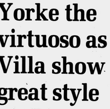 A well worked second goal in the 47th minute put paid to Wimbledonโs threatened revival. Miloลกeviฤ played in Gary Charles on the right and his low cross was cleverly heeled on by Yorke into the path of Ian Taylor who could not mess with his left foot from 10 yards. Not even the Villa Park downpour could dampen Villaโs spirits as they continue their best start for 15 years.