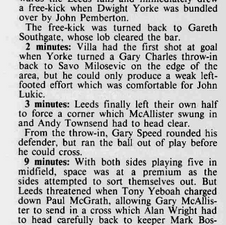 "Brian Little's disciplined adventurers, their youthful exuberance directed by the canny minds of Andy Townsend and Paul McGrath, were, to a man, superior to Leeds United, a team seemingly palsied by caution and confusion."