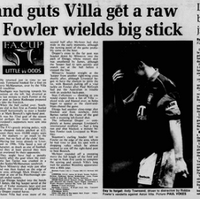 "Villa would have been better off defending with 10 men, because Southgate was not fit physically or mentally to deal with Fowler. "