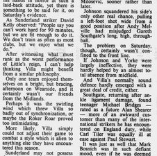 Villa lose for the 3rd time in 4 Premier League games under Brian Little as they are beaten at Roker Park and fall back to 8th in the table.