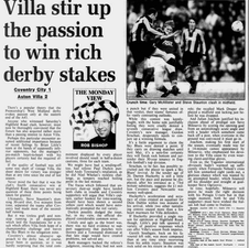 Future Villa centre forward Dion Dublin scores a 75' equaliser for Coventry whilst future Villa assistant and caretaker manager Gary McAllister lines up for the Highfield Road outfit.