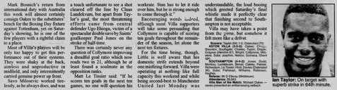 Mark Draper contributes his 20th goal involvement in a Villa shirt on his 104th appearance (102 Starts) to make it W47 D27 L30, 6 Goals, 14 Assists, 3 Bookings and 1 Red Card so far in his Villa career.
