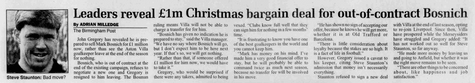 The Australian, whose contract at Villa Park runs out at the end of this season, making him available on a free transfer, is a likely replacement for Peter Schmeichel and Gregory said: โIf United are concerned about the Schmeichel situation and they want to win the Premiership, then they can have Bosie for one million quid.โ