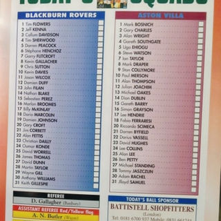 Future Villa boss Tim Sherwood scores the winner for Blackburn against 10 man Villa on 88โ whilst future Villa centre forward Chris Sutton lines up for the Rovers.