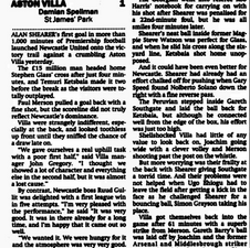 In contrast, Villaโs defence was run ragged by Shearer; and, Paul Mersonโs splendid goal apart, he and Julian Joachim were isolated in attack. John Gregoryโs most telling comment concerned the depth of his squad: โWe had YTS boys on the bench today.โ