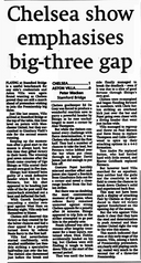 "Villa brought on Paul Merson and Steve Stone in a belated effort to poach a point. But even then Chelsea, with Tore Andre Flo and the debutante Gabriele Ambrosetti also introduced, still had the stronger armoury."