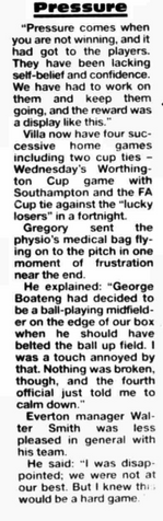 They are matches that the chairman Doug Ellis and the supporters will expect to win. Whether Gregory can convince his players to have the same belief is more open to question. There is very public disharmony in the squad, with most of the criticism aimed at the manager.