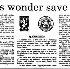 Not long after Delaney had shot wide, Villa came agonisingly close to taking the lead. Mersonโs cross from the right was met with a glancing header by Ian Taylor but the ball flashed inches wide of the far post as Walker stretched in vain for a touch.
