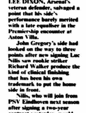 | 84โ Goal, 1-1, (Arsenal), Lee Dixon