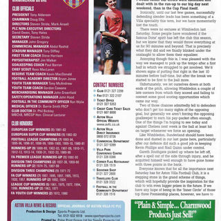 Peter Enckelman concedes his 10th goal in a Villa shirt on his 14th appearance (13 Starts) to make it W6 D4 L4, 10 Goals Conceded at a rate of 0.71 goals per game and 7 Clean Sheets (50%) (4 in 10 League games) so far in his Villa career.