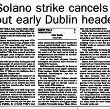 But Villa had obviously left the lessons of Coventry unlearned, and were made to pay in the 82nd minute. Solano raced into the box to chip deftly over James. Still Dublin had a late chance to win the game but his last-minute header, like so much of Villaโs second-half play, was wide of the mark.