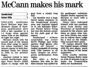 Future Villa midfielder Gavin McCann scores Sunderland's late equaliser.