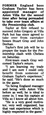 Despite that however Taylor was welcomed on the strength of his past Villa achievements alone as he is greeted with a euphoric reception for his transformative work on the club between 1987-90 but few are fooled that the appointment of a veteran manager with little understanding of modern football and footballers is anything but an effort to shore up the power base of a cynical Chairman. That Taylor is used as a pawn in this way is distinctly uncomfortable.