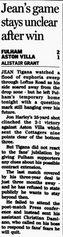 Boa Morte forayed down the left to cause chaos in the Villa defence, creating chances for Steve Marlet, Louis Saha and Sean Davis. But it was Harley who hit the decisive goal and from that moment Fulham were firmly in control.
