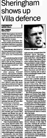 And Villa paid a heavy price when Pompey took the lead through veteran Sheringham three minutes before the interval.