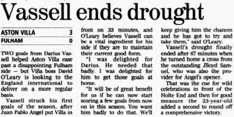 England international Vassell scored at Villa Park for the first time in nearly a year then promptly added another.
