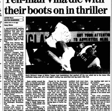 Despite going a goal up early on with all the signs that Villa would secure a famous comeback, Gavin McCann's first half sending off, and an inability to score a second until the dying stages meant a brave Villa performance ended in a victory although not enough to earn another League Cup final appearance.