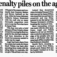 "Villa struck the bar twice before they went in front with Lee Hendrie and Nolberto Solano both going close."