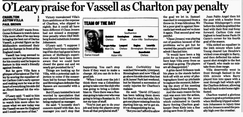 Charltonโs Matt Holland also struck the woodwork but a slick Villa levelled with Vassellโs shot from close range.