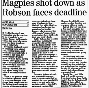 But the Magpies hit back strongly and Patrick Kluivertโs neat finish and Andy OโBrienโs header turned it around.