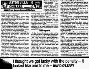 Soon after Coleโs goalbound shot was blocked by Gavin McCann while Ricardo Carvalho missed the target after Villa failed to