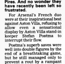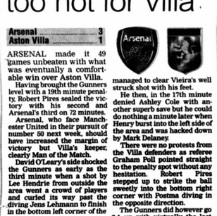 After Pires had scored from the resultant spot-kick, Arsenal continued to carve through the Villa defence but it took until the stroke of half-time before they scored again.