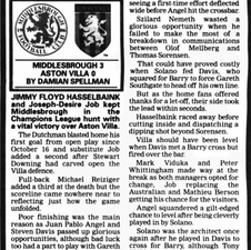 Boroโs Gareth Southgate headed off the line from Gareth Barry, who also hit the post, only for Hasselbaink to break away and blast into the bottom corner.