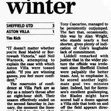 Villaโs only serious response had been a volley from Carlton Cole that was easily held by Bladesโ keeper Paddy Kenny - but they struck against the run of play a minute after the interval to take the lead.
