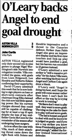 Nolberto Solanoโs pinpoint cross was headed in by the 20-year-old Ridgewell to give Villa a ninth-minute lead.