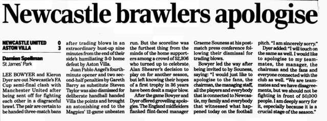 Newcastleโs dreadful afternoon ended in disgrace when Bowyer and Dyer traded punches with each other in an astonishing bust-