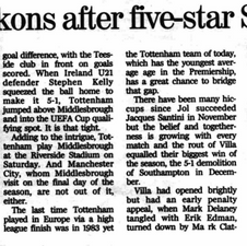 Villa's five game unbeaten run is shattered at White Hart Lane as they concede five to leave them with six wins in twenty two Premier League games under David O'Leary and 11 defeats in the last 23 but of even more concern is the delusional dribbles of drivel that pour out of the manager's mouth post match.