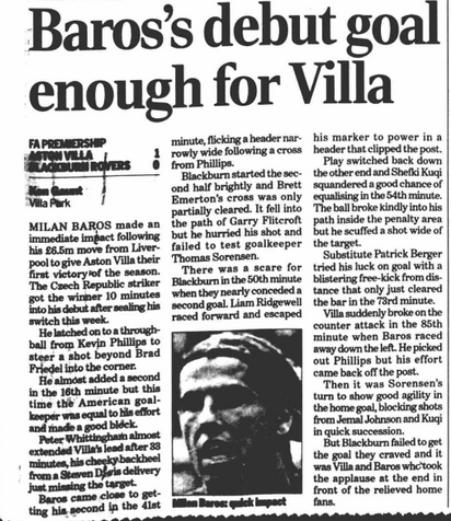 But all the talk among home fans will inevitably focus on Baros and, on this evidence, he looks worth the ยฃ6.5m paid by Villa to Liverpool.