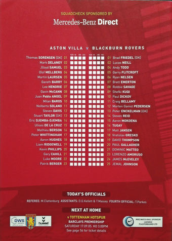 Patrik Berger, 31, makes his Villa debut from the subs bench after joining from Portsmouth on a free transfer in July 2005 to become the 783rd player to play for Villa in first team League or Cup football.
