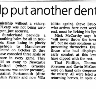 โUntil we scored, the game was even but it was clear Sunderland lacked confidence and, after the first goal, you could see it escaping. The Villa players are all talking about the tremendous stadium and fantastic crowd but, to get out of trouble, Sunderland need to win maybe six games in a row. And soon."