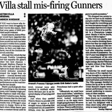 Arsenalโs stuttering form away from Highbury continued in a tame draw which saw Aston Villa have the better of the play without managing to score.